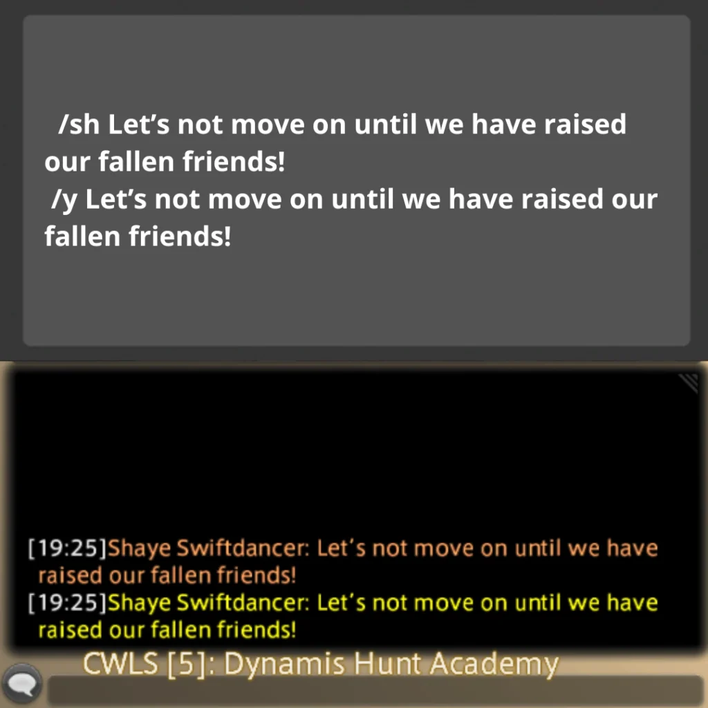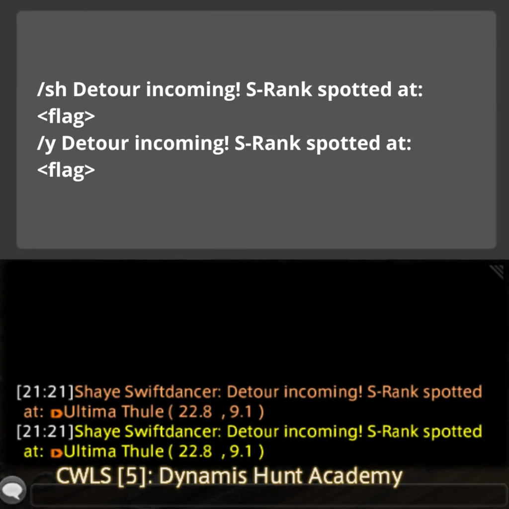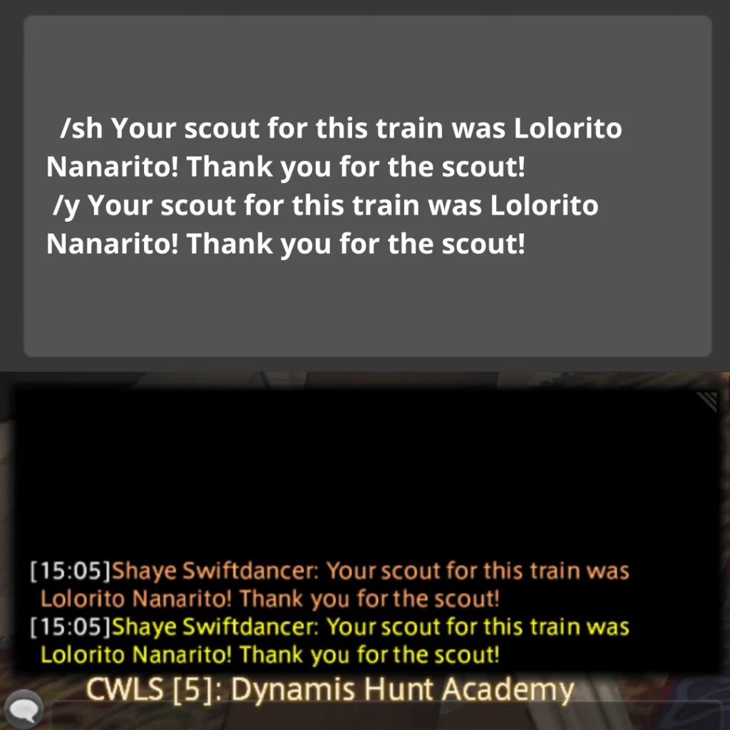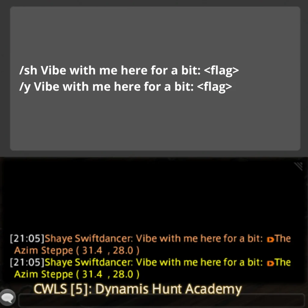 Echo chat is a feature within the game that allows you to input or view text exclusively visible to yourself; it does not appear in any public chat channels. This feature proves useful for setting up hunt flags in Echo chat, creating what we commonly refer to as an “Echo Log,” which serves as a handy reference tool while conducting hunts. *Please note that your echo log will get overwritten by too many system messages (since you cannot disable them) if you are hopping worlds a lot between when you place your flags and when you run your train, so be cautious!