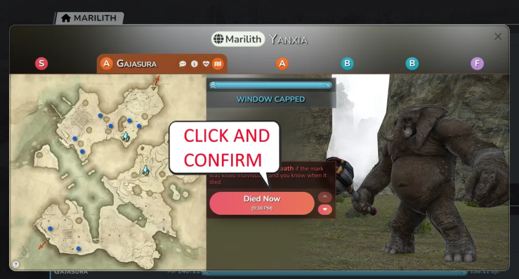 Verifying that the marks are still there, this is optional but recommended to do for Stormblood since it has a higher rate for marks being sniped.