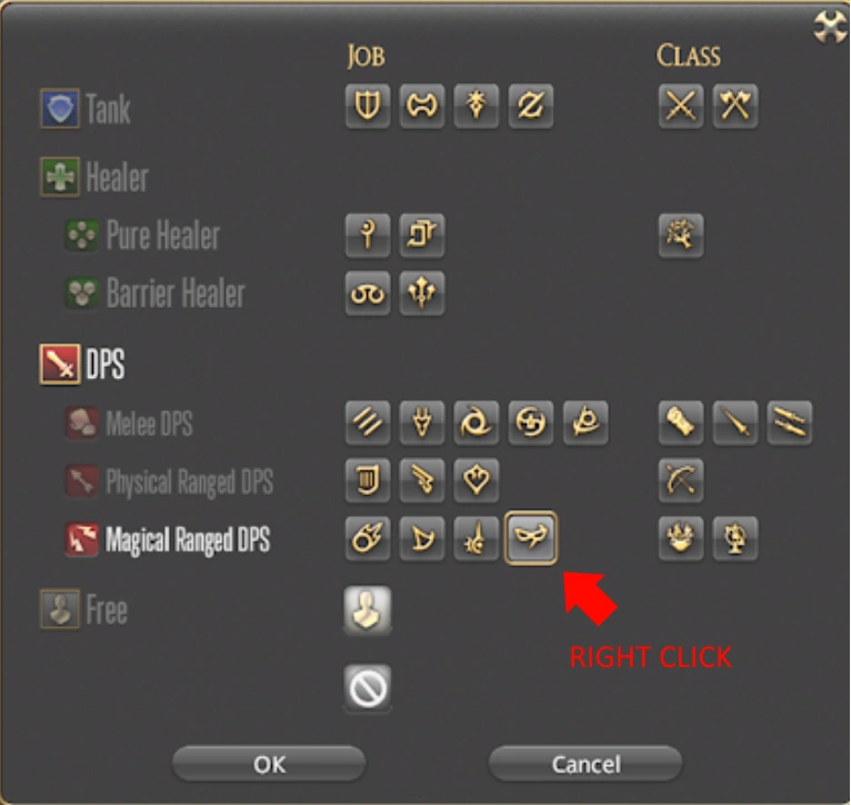 To do this, click on the last slot in your party on the recruitment criteria screen. Then, right-click the Blue Mage icon and it will select only that. Click OK. Now that spot is only available to a Blue Mage.