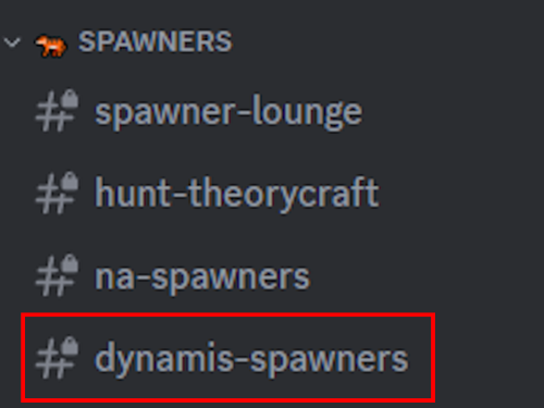 The Spawners channel (dynamis-spawners) serves as a place for spawners across Dynamis to coordinate their work so that they don’t duplicate efforts on the same task.